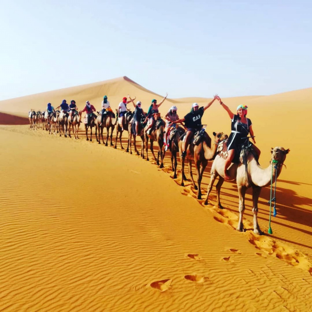 Wake up early to see the sunrise over the dunes – it is really fun to climb the nearest dune to admire all this! Enjoy breakfast in your camp before a 45-minute camel ride back to your car, which awaits you at a hotel, offering a second breakfast and the opportunity to take a shower. We drive back to Marrakech and stop over kalaa for lunch. During the trip, we can stop at any time to take pictures of some beautiful spots. In the late afternoon, arrival at your hotel in Marrakech.