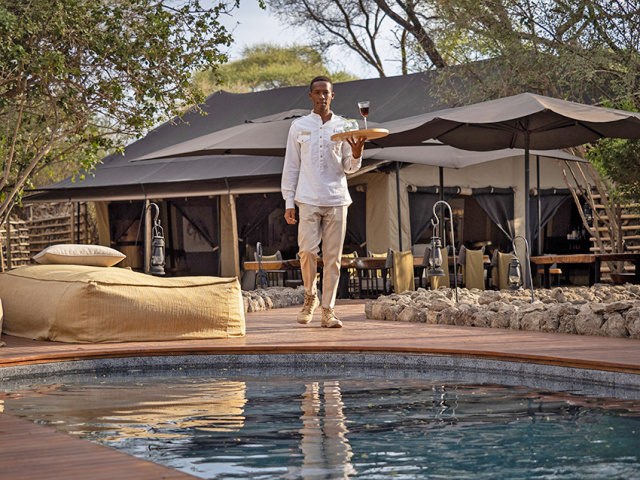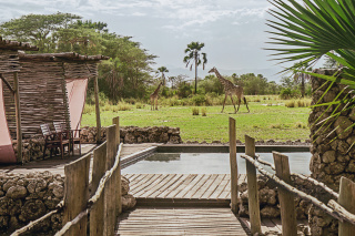Bordering Tarangire National Park, you'll arrive at Chem Chem Lodge - a distinguished, luxurious property. Each of its secluded yet spacious tented suites overlook the palm-fringed plains, with the palettes and textures imitating the natural beauty beyond.