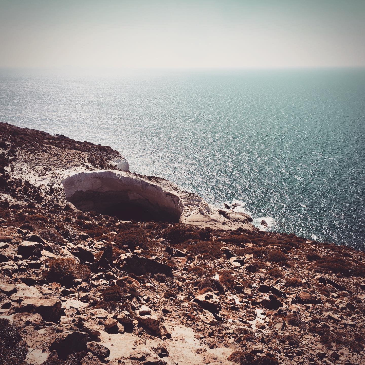 We were told you “can’t”. Well we did anyway. We kept being told the only way to get to Σπηλιά της Συκιάς (Sykia Cave) was by commercial or tourist boat, you can’t navigate your way over land. After a little preparation and a 2 hour scramble through the rocky west outcrop of the island we were able to find and climb down into the cave. We couldn’t believe that we were lucky enough to enjoy the unique cave to ourselves all day. We definitely made the most of it