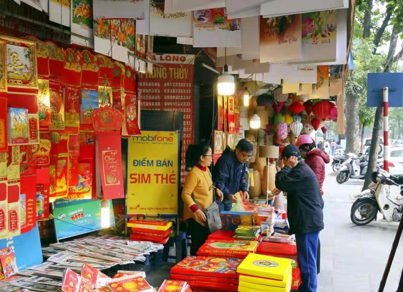 During these days, there are more and more people travel to Hang Ma street to go shopping. They buy many different goods for this special day, especially the lunar New year which is coming soon