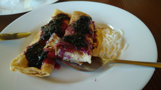 pancakes with jam and sour cream in the Carpathian